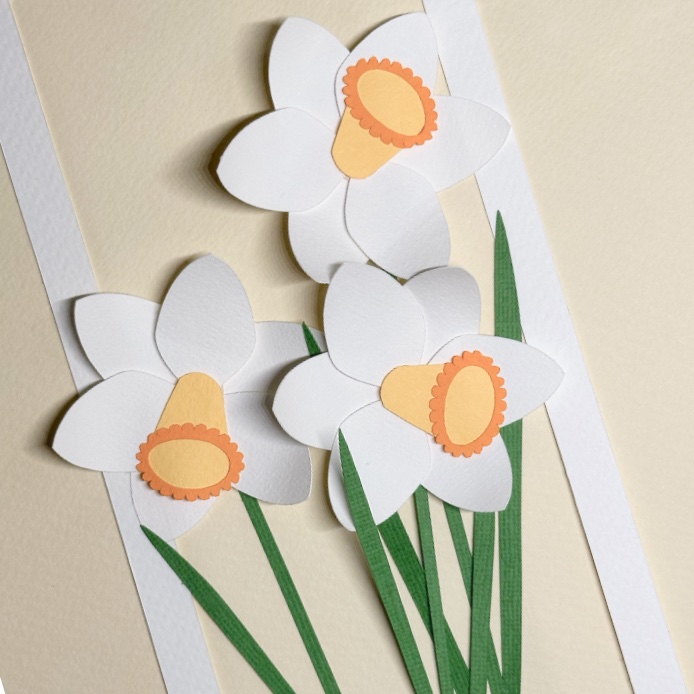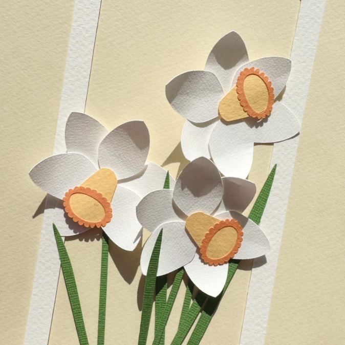 Fabriquez une carte qui annonce le printemps avec ces 3 jonquilles (jonquille jaune ou blanche, au choix)