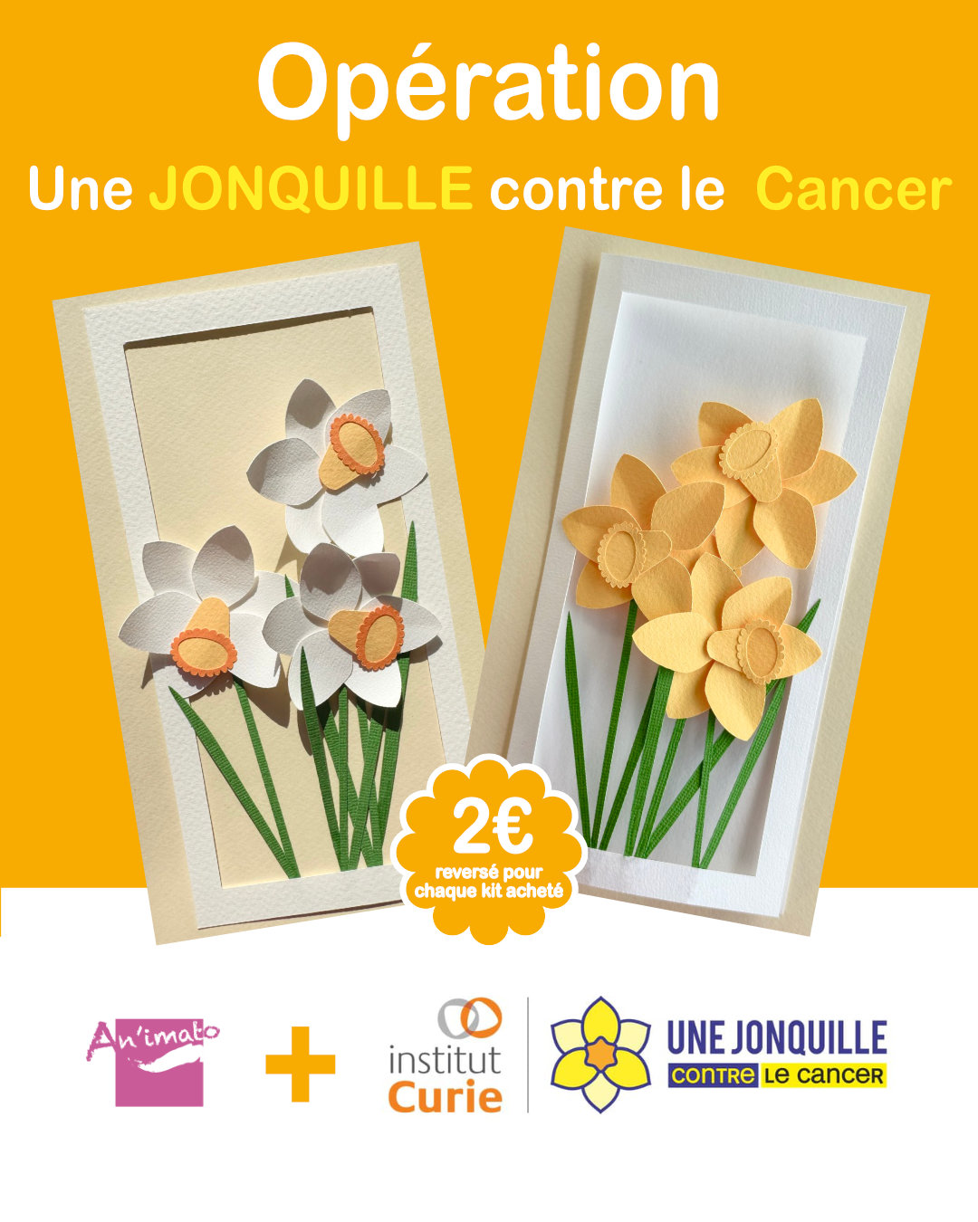 - Pour chaque kit vendu, 2€ reversé pour l’opération Une jonquille contre le Cancer